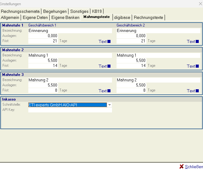 - Klicken Sie oben auf den Reiter Mahnungstexte