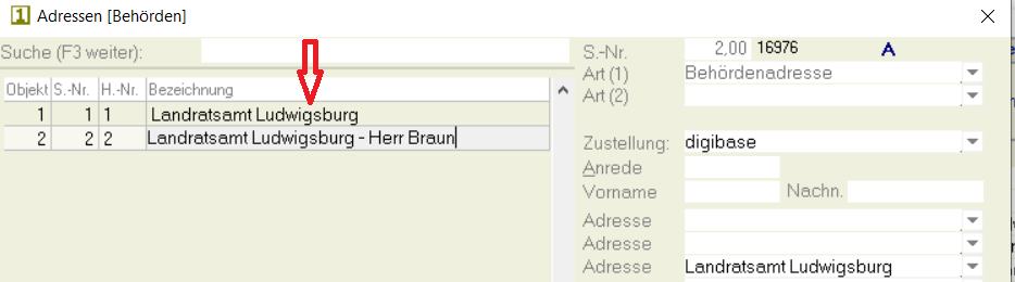 - Öffnen Sie in System / Adressen / Behörden die Behördenadressen