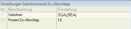 Einzelne Gebühren erhöhen oder minimieren / Gebührenkürzel Zu- und Abschläge